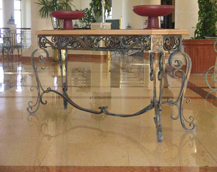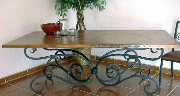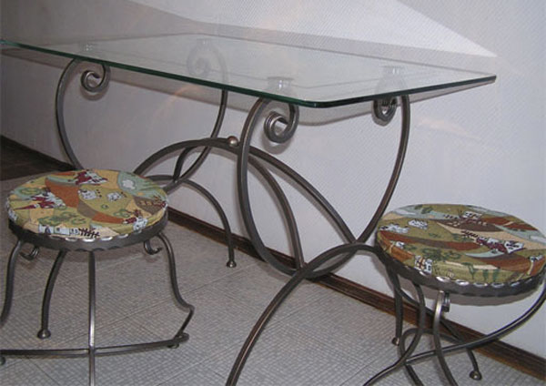 Кованые столики - прекрасный пример изящной мебели, которая может быть использована как для украшения домашнего интерьера, так и интерьера офиса, ресторана, кафе. Кованый столик может быть выполнен целиком из металла, или иметь лишь железное основание, а верх, т.е. столешница может быть изготовлена как из стекла, так и из дерева.