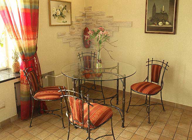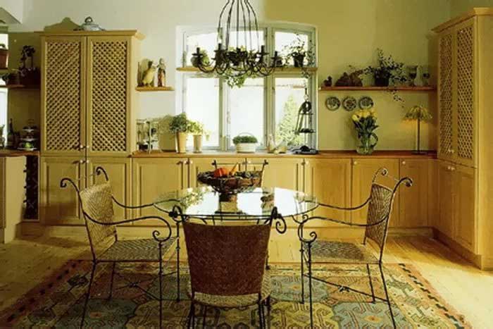 Стиль прованс – яркий пример того, как из недорогих и доступных материалов можно сделать настоящее произведение искусства. А учитывая тот факт, что «прованс» и есть – простой, деревенский, то задача становится не только выполнимой, но очень и очень интересной. Вот хотя бы кованая мебель в стиле прованс. Узор из металлических прутьев выглядит стильно и в то же время обычно. Такая мебель может быть совершенно неприметной, а может приковывать взгляд. Причем, это зависит не от исполнения, а от того, где она расположена. Кованую мебель можно встретить на веранде кафе, в городском парке, в красивом саду, на лужайке у дома и в самом доме. В каждом из этих мест эффект от ее «появления» будет совершенно разным.