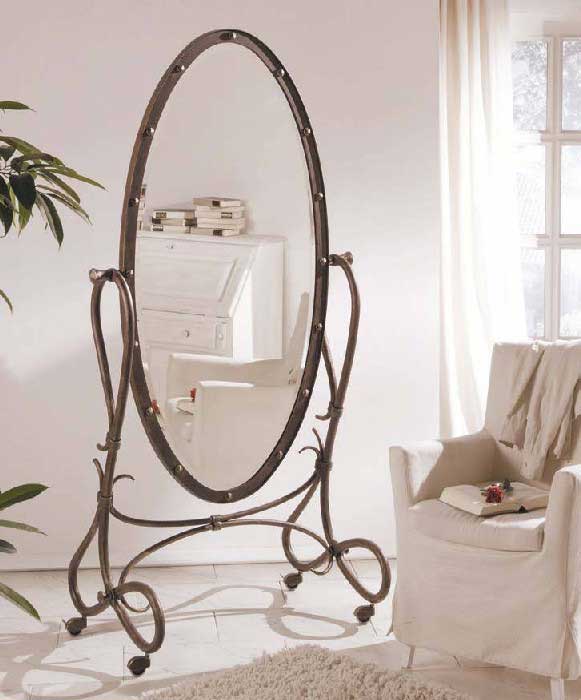 Кованые зеркала бывают настенными и напольными. Эти два вида служат абсолютно для разных целей. Зеркало напольное выполнено с элементами, в которых присутствует художественная ковка. Это прекрасное украшение для комнаты, к тому же, совершенно самостоятельное. Для современного интерьера предложены различные варианты зеркал, особенно распространены с прямоугольной формой. А чтобы придать комнате большую изящность, можно использовать овальную форму.